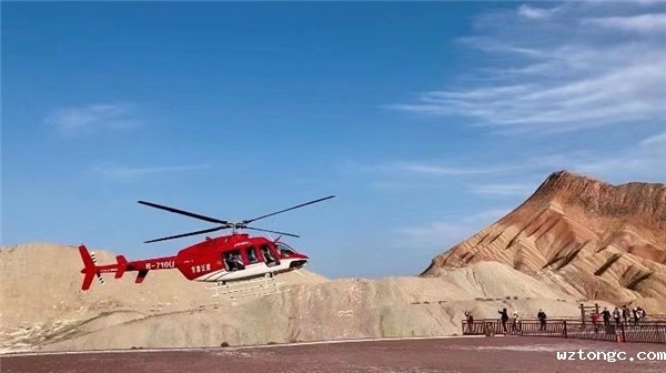 今年国庆中秋“双节”黄金周期间,张掖七彩丹霞景区内的直升机低空游览项目迎来消费热潮。