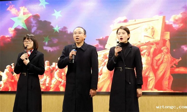 满腔热忱和拳拳赤心 ,随着熟悉的音乐响起,教师们齐上台,引吭高歌,歌唱伟大的祖国,致敬伟大的党。