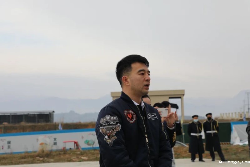 基地副总经理、教官曹昌黎在开飞致辞中首先恭喜学员顺利通过开飞理论考试,他勉励新学员理论学习无止境,希望学员们热爱飞行,热爱学习,严格作风纪律,着装严谨,遵守标准操作。离地三尺有风险,在训练中,要敬畏飞行,杜绝盲目蛮干,严格服从教员的指令。并祝愿所有学员学有所成,顺利毕业,成为一名优秀的飞行员。