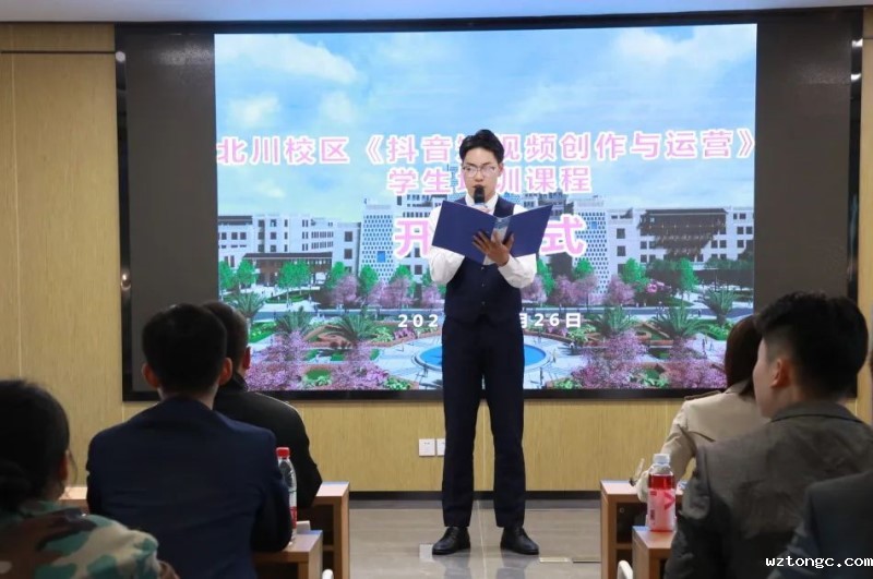 为帮助学生提高新媒体素养,丰富短视频创作及运营实战经验,提高学生短视频的创作能力,孵化校园短视频红人。集团品牌宣传部联合抖音头条学院共同开设《抖音短视频创作与运营》课程。10月26日,2022年北川校区《抖音短视频创作与运营》学生培训课程班级正式开班!betway伟德官网副院长梁国辉,绵阳泛美飞行职业技术学校副校长单招霞,绵阳云非工作室副主任罗琼,betway伟德官网团委郑钰欣出席开班仪式。