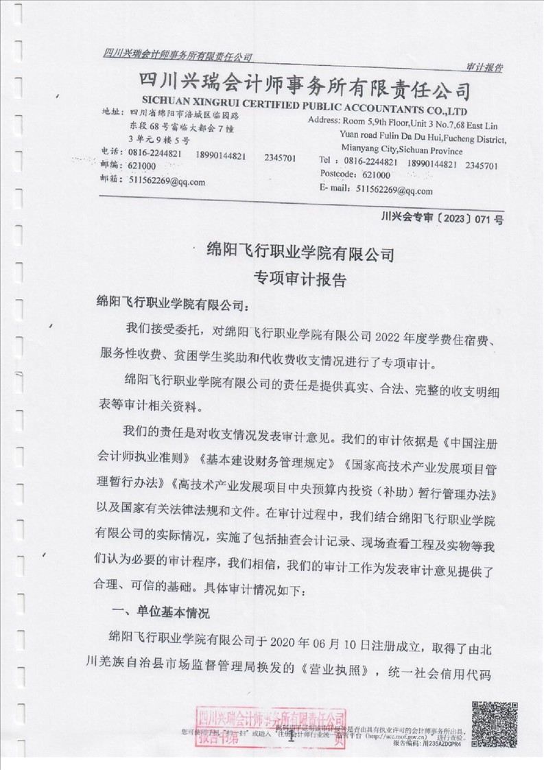 绵飞院2022年专项审计报告